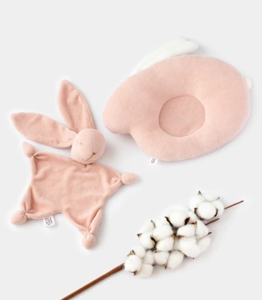 Перша безпечна іграшка-комфортер у вигляді зайчика та подушка «Зайчик» ортопедичної форми – підходить для діток від самого народження. Товари виконані виключно з гіпоалергенних матеріалів: верх- бавовняний велюр наповнювач – холофайбер