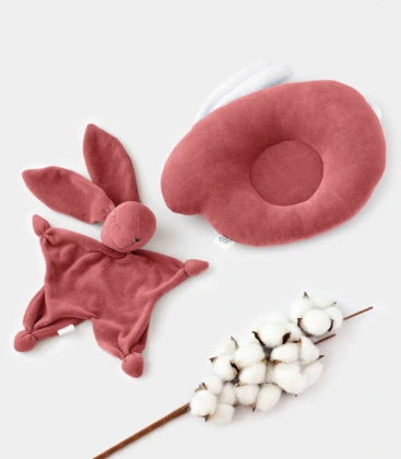 Перша безпечна іграшка-комфортер у вигляді зайчика та подушка «Зайчик» ортопедичної форми – підходить для діток від самого народження. Товари виконані виключно з гіпоалергенних матеріалів: верх- бавовняний велюр наповнювач – холофайбер