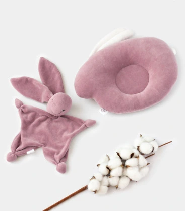 Перша безпечна іграшка-комфортер у вигляді зайчика та подушка «Зайчик» ортопедичної форми – підходить для діток від самого народження. Товари виконані виключно з гіпоалергенних матеріалів: верх- бавовняний велюр наповнювач – холофайбер