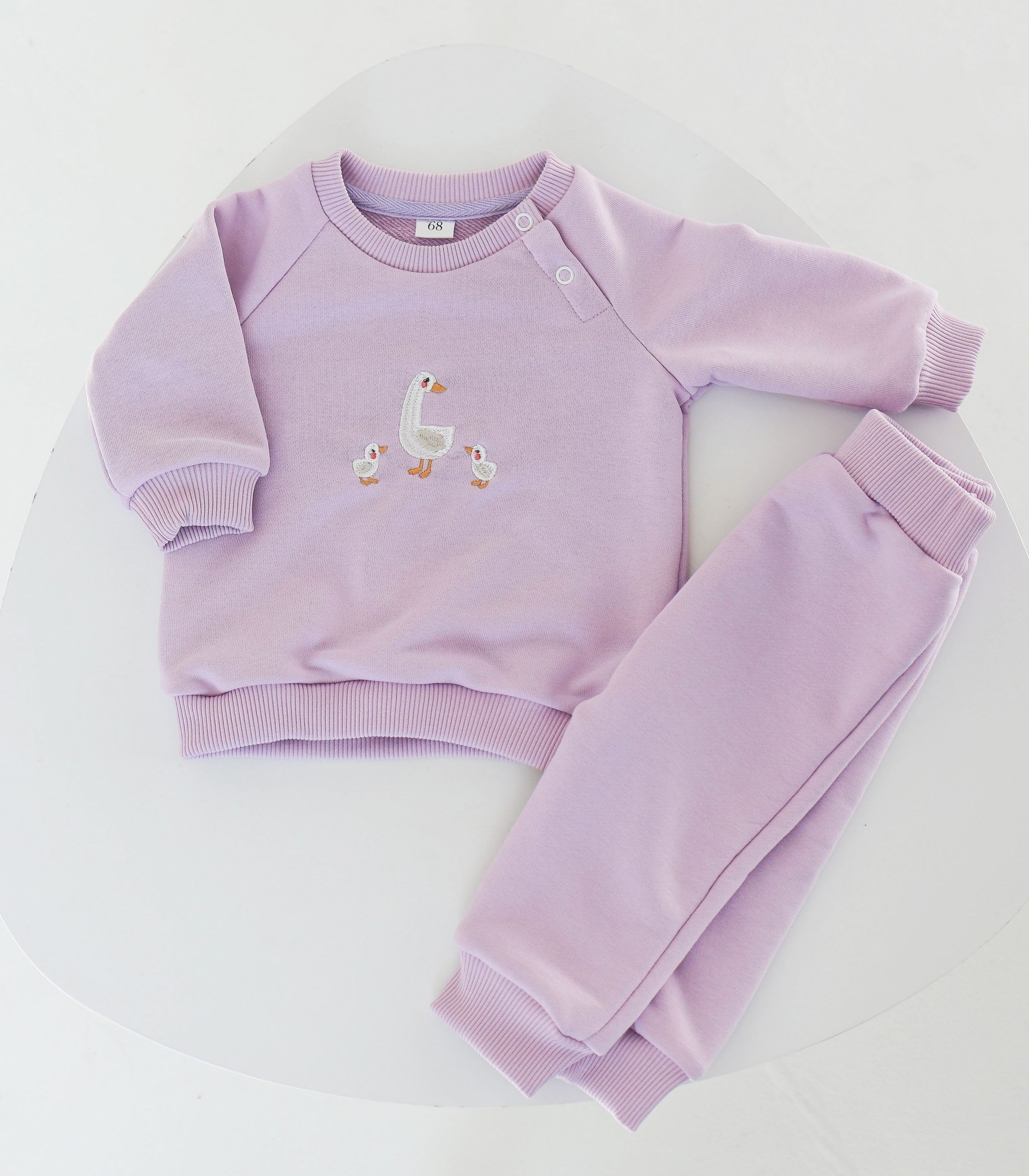 Костюм складається з кофти з довгими рукавами та штанців. Мила вишивка додає костюму унікальності.