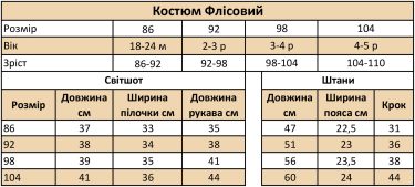 Складається зі штанців на комфортній мʼякій резинці та кофтинки на блискавці по всій довжині. Зручний, стильний і теплий, а на дотик – надзвичайно приємний!