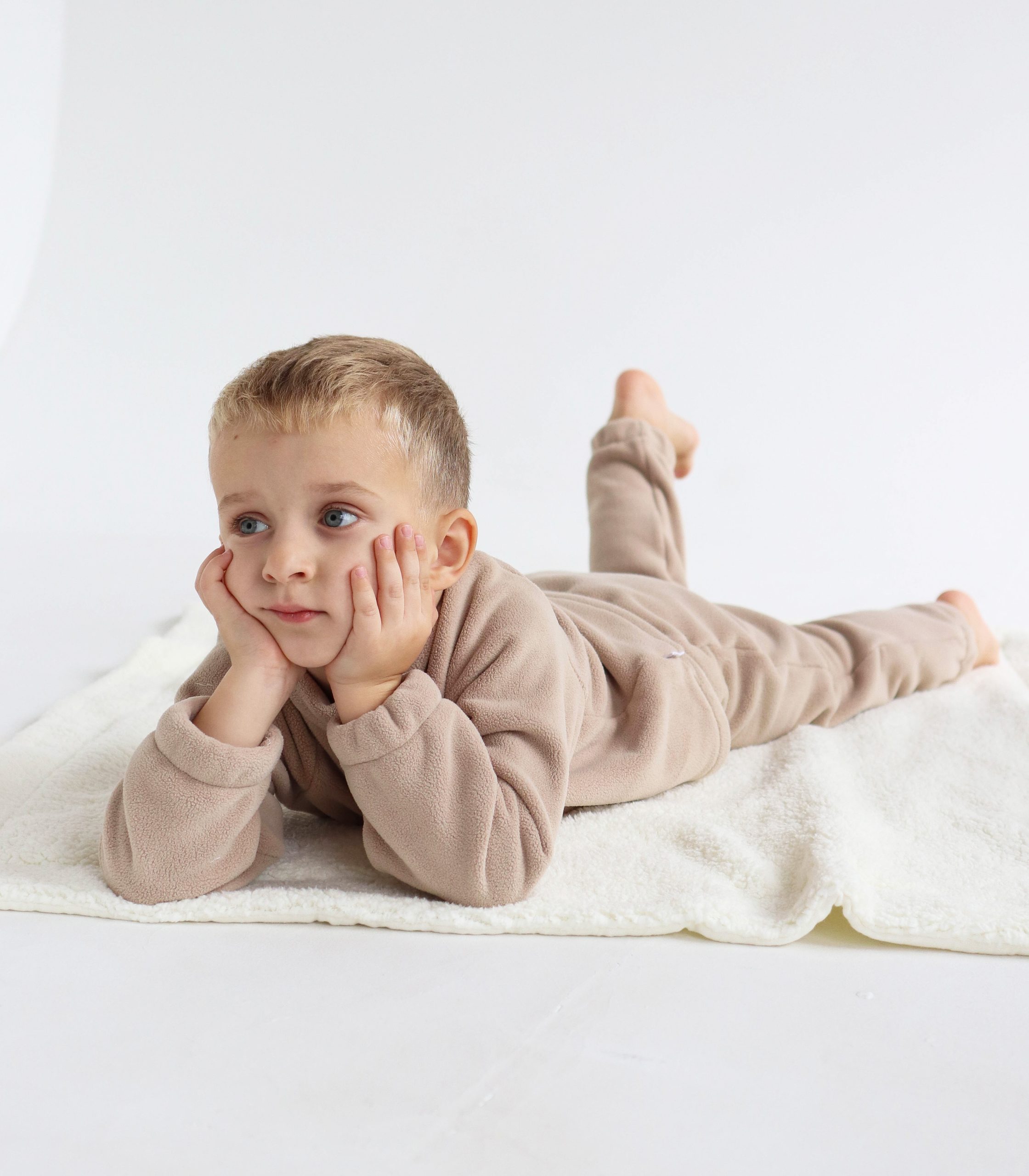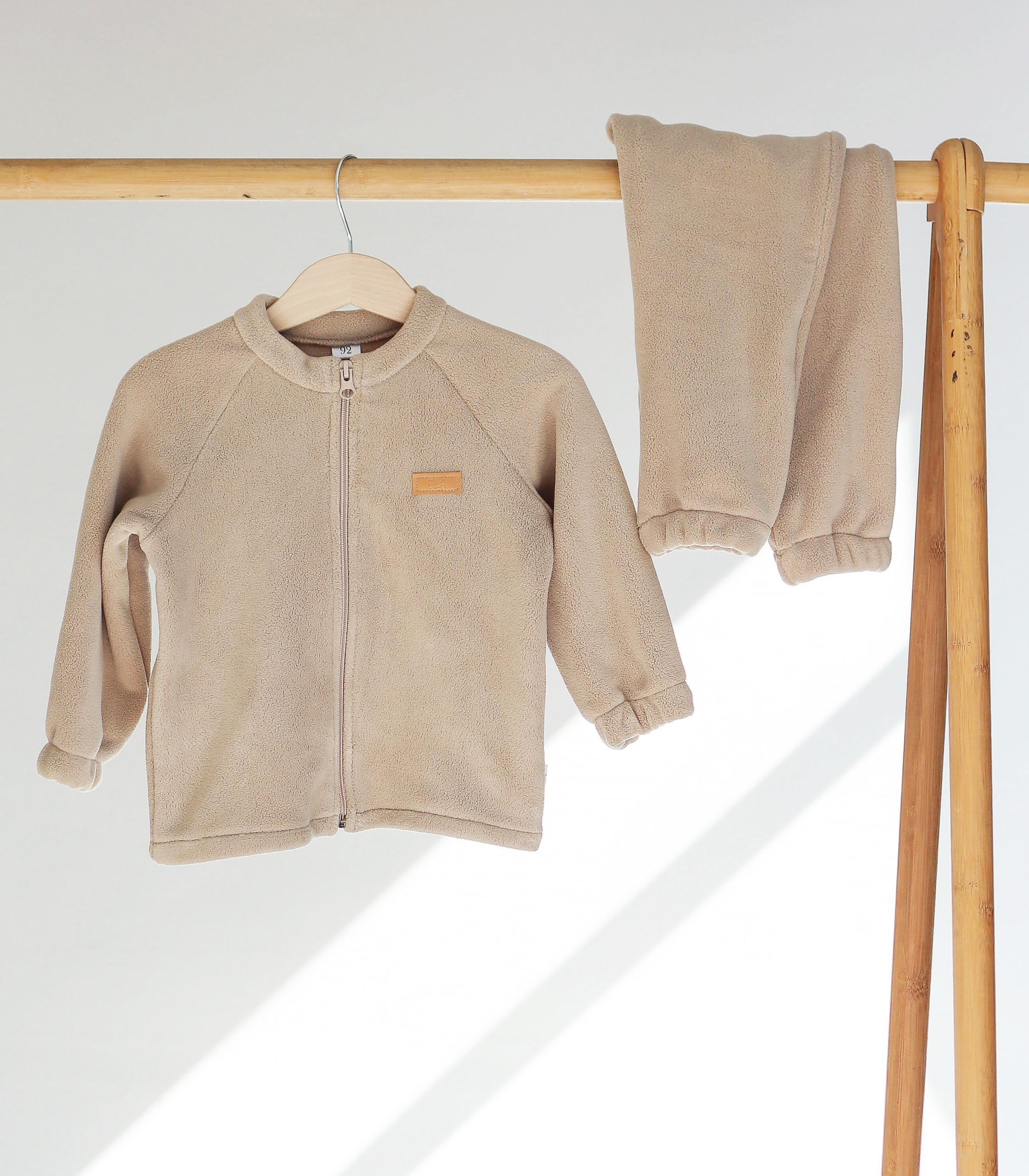 Складається зі штанців на комфортній мʼякій резинці та кофтинки на блискавці по всій довжині. Зручний, стильний і теплий, а на дотик – надзвичайно приємний!