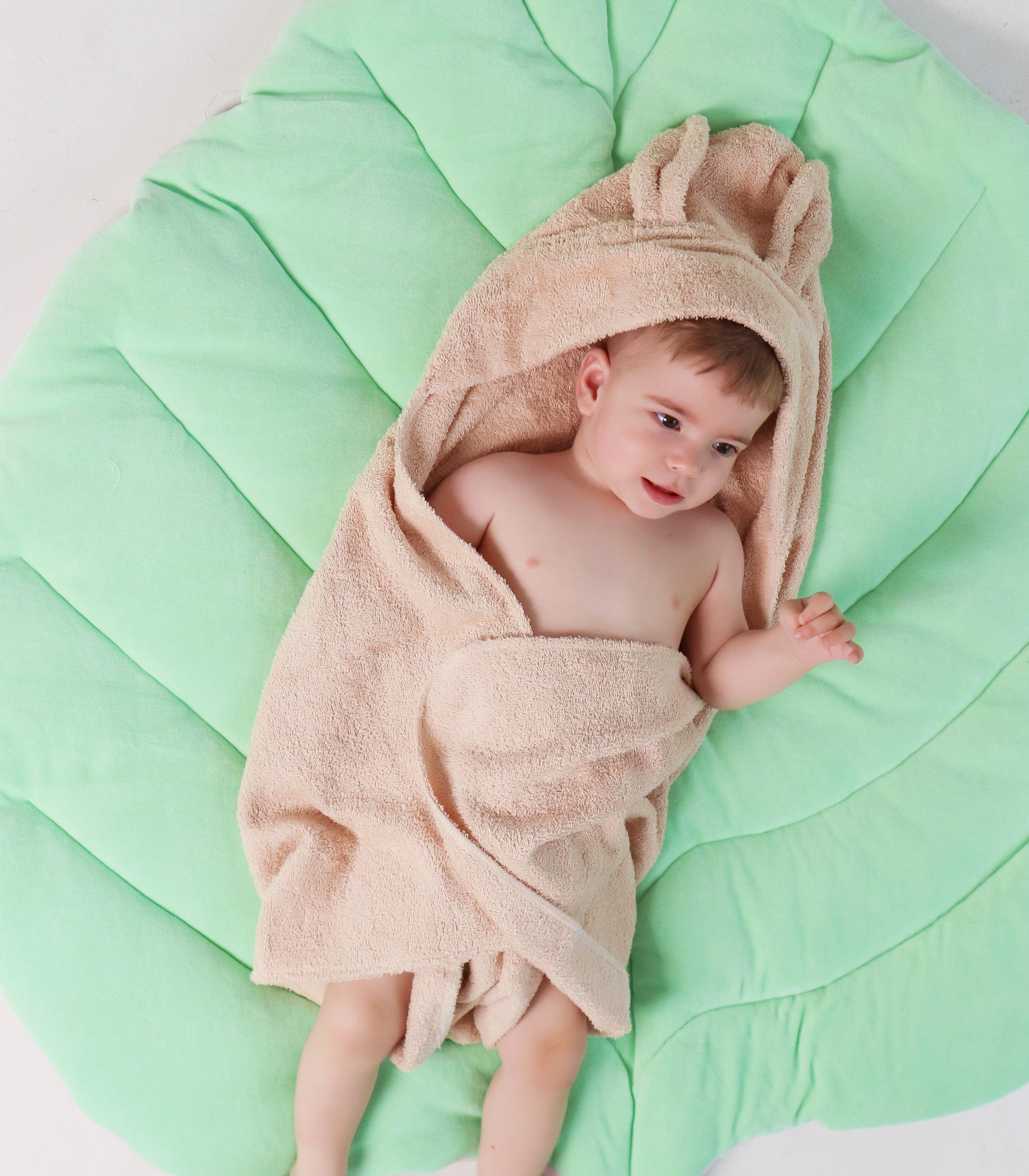 - Виготовлений з м’якої та приємної на дотик махрової тканини, яка не подразнює ніжну шкіру дитини